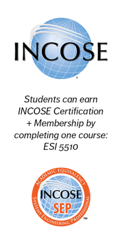 Courses required for the joint college’s MSSE degree have been recognized as equivalent to the certification knowledge exam for Associate Systems Engineering Professional (ASEP) and Certified Systems Engineering Professional (CSEP) certification of the International Council on Systems Engineering (INCOSE).