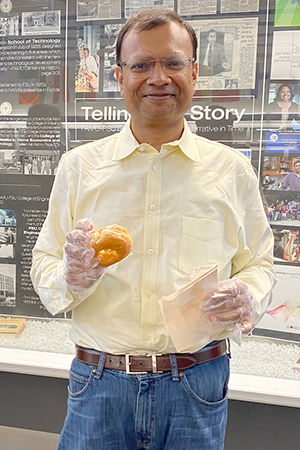 Dean Suvranu De and students from the SELB, the Student Engineering Leadership Board handed out donuts to students, new and returning, to show appreciation. It is the first social since De became the new dean, in July this year.