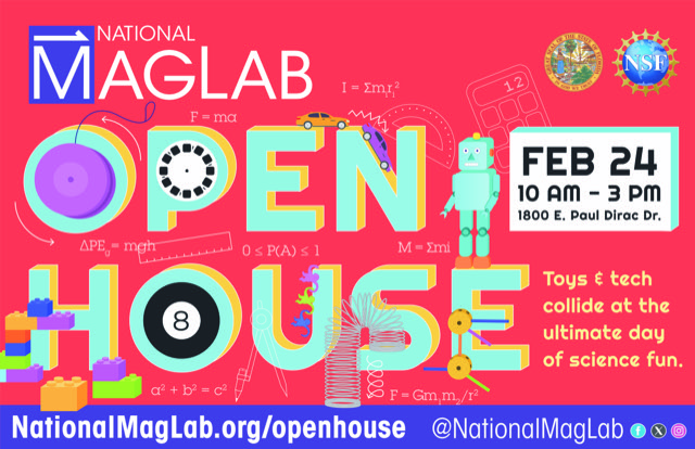 MagLab Open House will be on Saturday, February 24, 2024. Join us for FREE hands-on science fun for visitors of all ages! The College of Engineering will be tabling and have research labs open to tour (AME, CAPS, HPMI, RIDER).