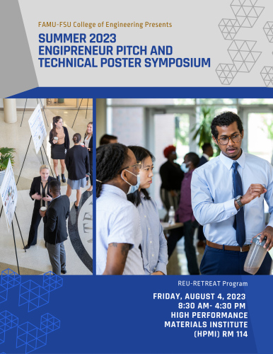On behalf of this year’s FAMU-FSU College of Engineering Summer REU RETREAT Program, You are cordially invited to this year’s annual Engi-preneurship Pitch Competition & Poster Symposium i.e. the Shark Tank version for our STEM students.